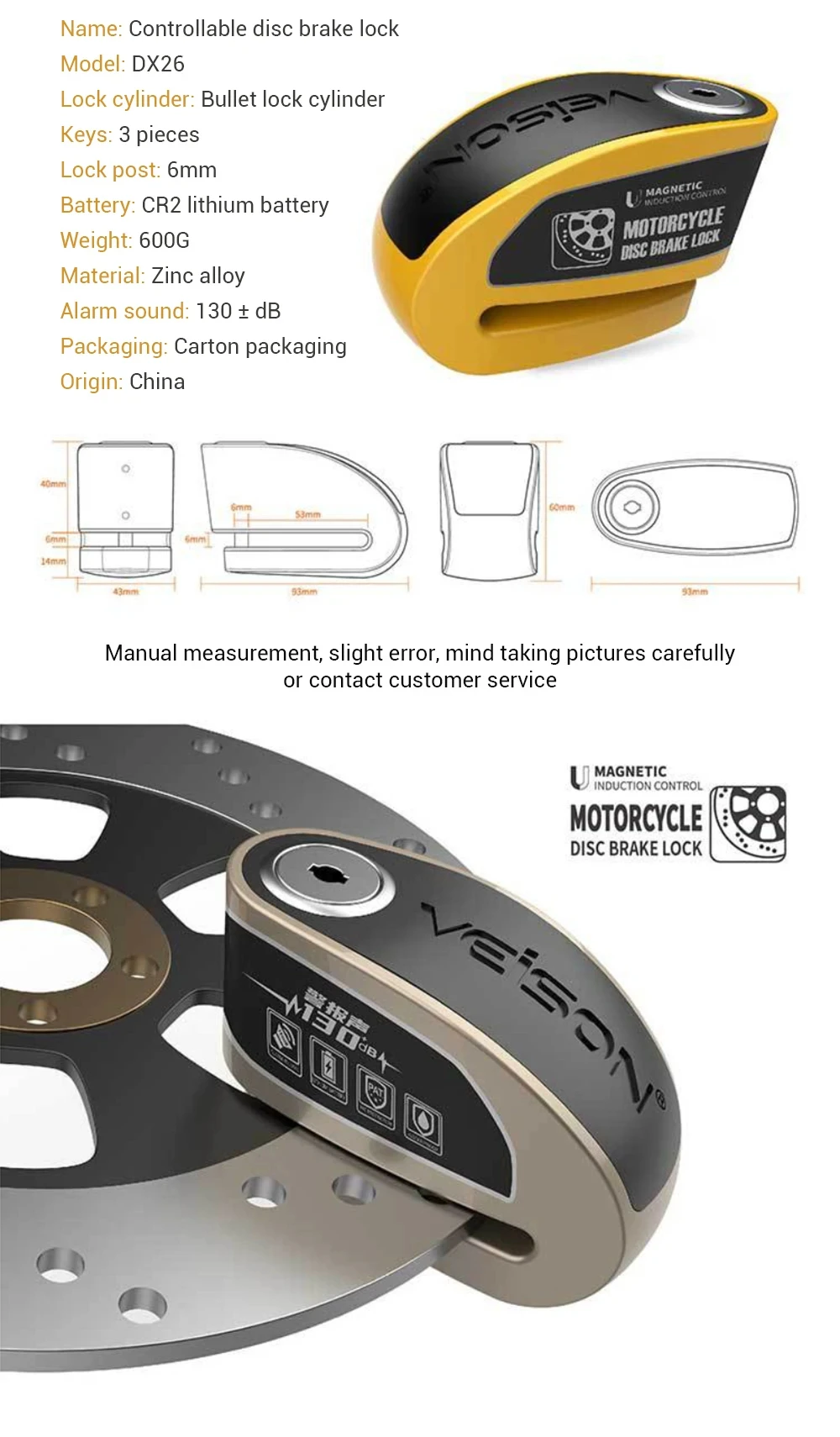 Motorcycle Waterproof Alarm Lock Bicycle DiscLock Lntelligent Controllable Alarm Disc Brake Lock Electric CarLock DiscBrake Lock